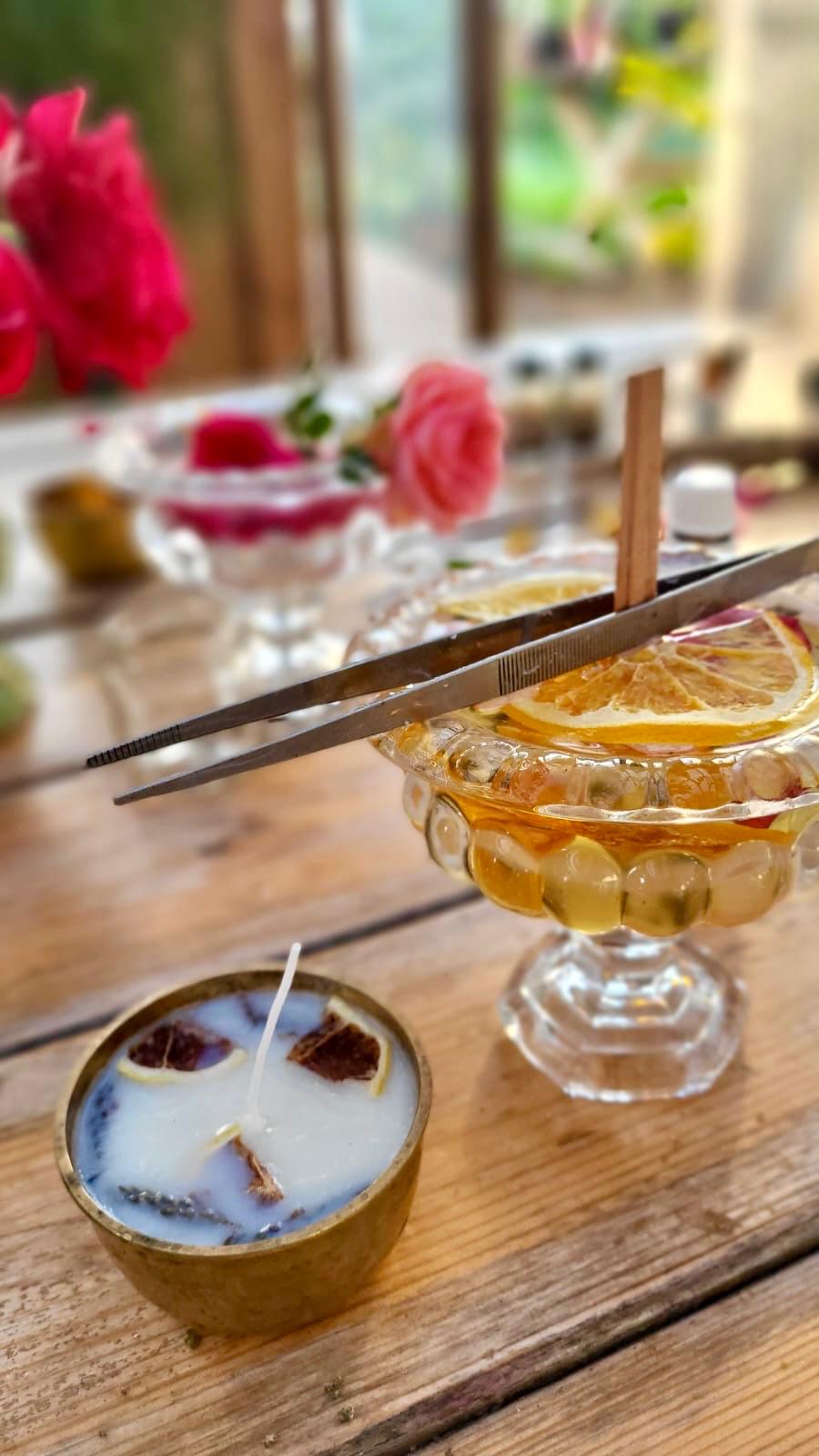 בסדנה תוכלו ללקט עלים, פרחים ופרוסות הדרים היישר מהחווה, וליצור נר ריחני אישי בעבודת יד, בתוך כלי זכוכית מעוצב. זהו מפגש של השראה, יצירה וחיבור, בו כל פרט נבחר בקפידה – מהטבע אליכם.